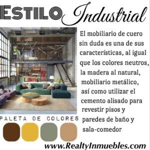 estilo natural y el acero son piezas de suma importancia al momento de incorporarlo, busca una estructura arquitectónica recreada a través de materiales como: cuero, hierro, madera al natural, cemento alisado, hormigón y ladrillos en paredes.