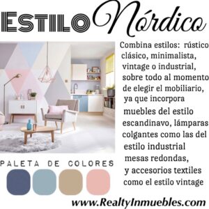 - Nórdico: Es una tendencia que en los últimos años ha cobrado mucha fuerza. El origen de este tipo de decoración se encuentra en Noruega, Suecia, Finlandia y Dinamarca, donde los días soleados escasean gran parte del año, por lo que se buscó la manera de sustituir esa falta de luz. La solución la encontraron en colores claros y elementos relacionados con la naturaleza.
